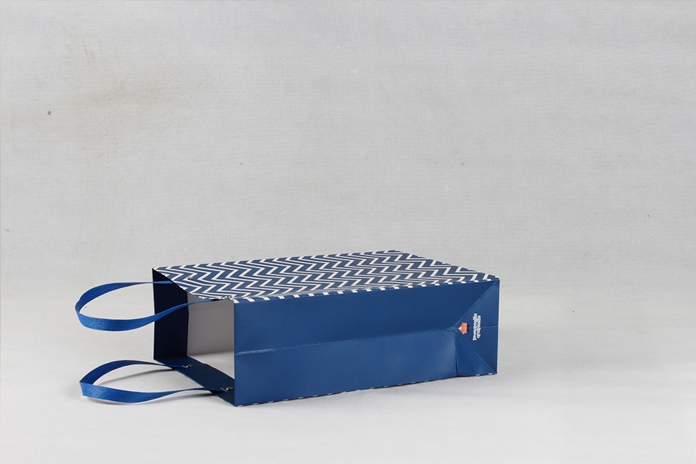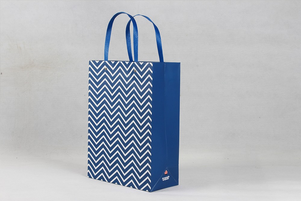 高檔藍色條紋白卡紙袋